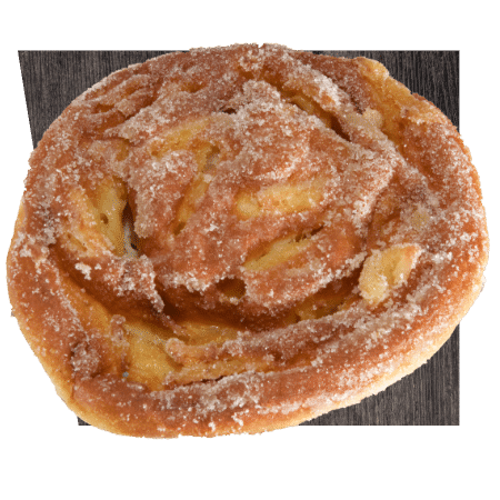 Leichter Dinkel-Hefeteig gespickt mit frischen Apfelstückchen im heißen Pflanzenfett gebacken. Noch heiß werden sie im aromatischen Ceylon-Zimtzuckerbett gedrückt.