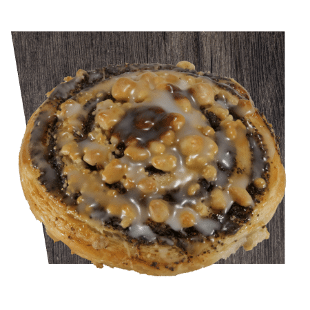 Frisch gemahlener Mohn gekocht in heißer Milch, dann in Butterplunderteig gerollt. Feine Butterstreusel mit einen kräftigen Klecks Pflaumenmus als Topping, das ist Dümigs leckere Mohnschnecke.