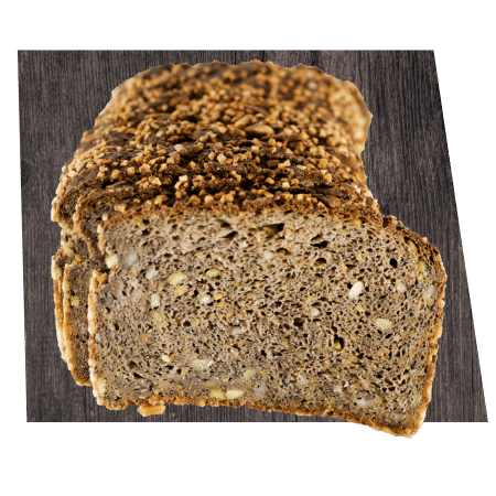 Dinkelvollkornmehl, Naturdinkelsauer, Wasser, Chiabia Samen, Reiseiweißpulver, Erbsenschrot, Beluga Linsen, Kastanienerbsen, Mandeln, Meersalz, Traubenzucker, Hefe