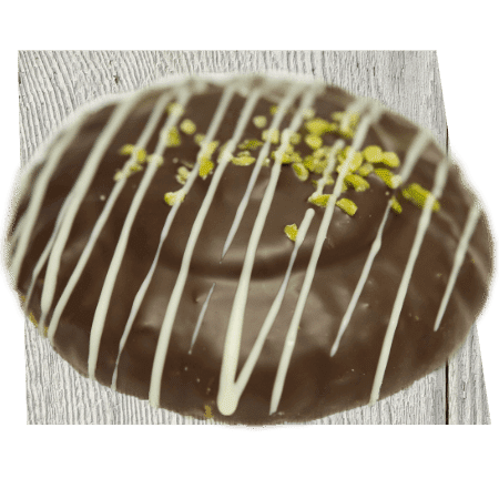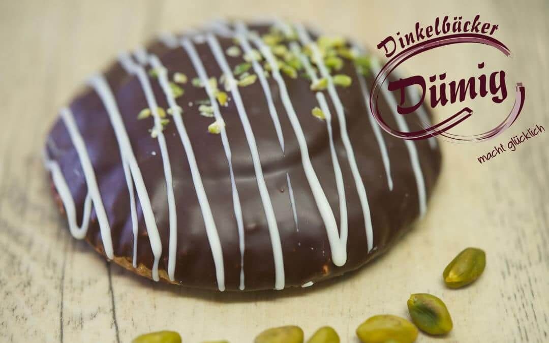 Der Pistazien-Elisenlebkuchen gefüllt mit Pistazienmarzipan und überzogen mit feiner belgischer Schokolade..