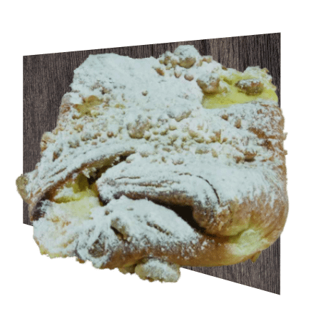 Fein cremige Quarkfüllung umhüllt mit Butterdinkelplunderteig, mit Butterstreusel gekrönt und leicht mit Puder Zucker bestäubt.