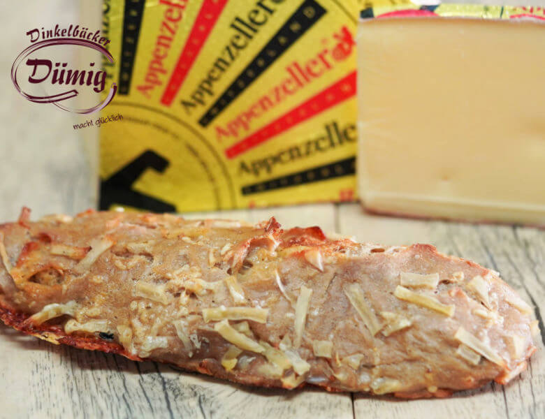 Schweizer Appenzeller trifft Dinkel in unser Spezial Edition „Schweizer Seele“. Damit es noch mehr schweizerisch wird, überbacken wir die Seelen-Spezialität mit Kartoffelrösti und Emmentaler. Die Zucchinis im Teig geben die erfrischende und ausgewogene Note in der Kombination der zwei Käsesorten.