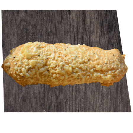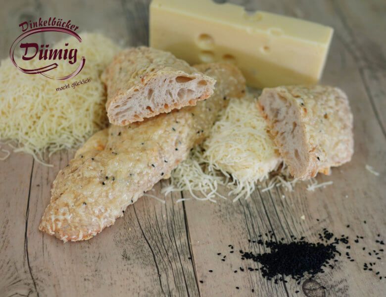 Dinkelmehl, Emmentaler, Wasser, Meersalz, Backmalz, Hefe. Dekor: Sesam, Schwarzkümmel.