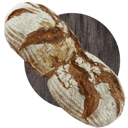 Roggenmehl, Dinkelmehl, Wasser, Natursauerteig ( Roggenmehl und Wasser), Meersalz, Gewürze.