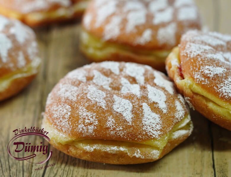 Wir können nicht anders, noch ein Krapfen mehr, unsere Weltpremiere made by Dinkelking der „Vegan-Dinkel-Krapfen“ gefüllt mit Aprikosenmarmelade und einem Topping aus Zimtzucker und Puderzucker.
