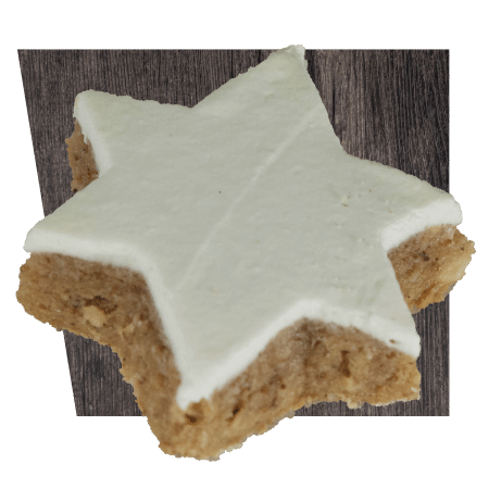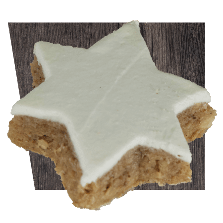 Der klassische Zimtstern wird bei Dümig mit der Hand traditionell ausgestochen. Weich und zart im Biss, so muss der Zimtstern sein.